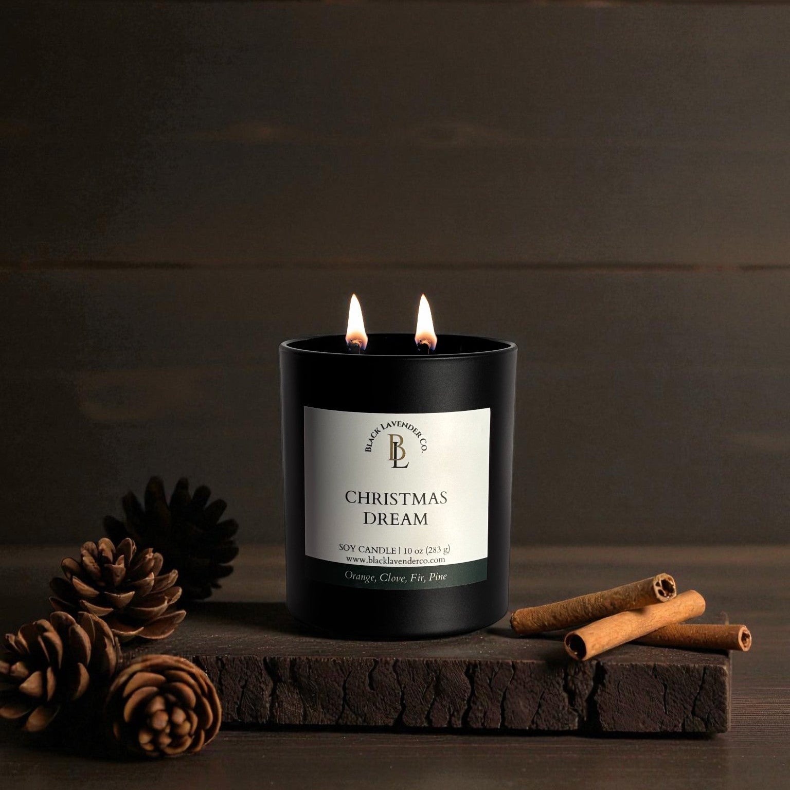 - 10 oz. double cotton wicked matte black jar with a bamboo lid (This size is perfect for filling medium to large sized living areas)