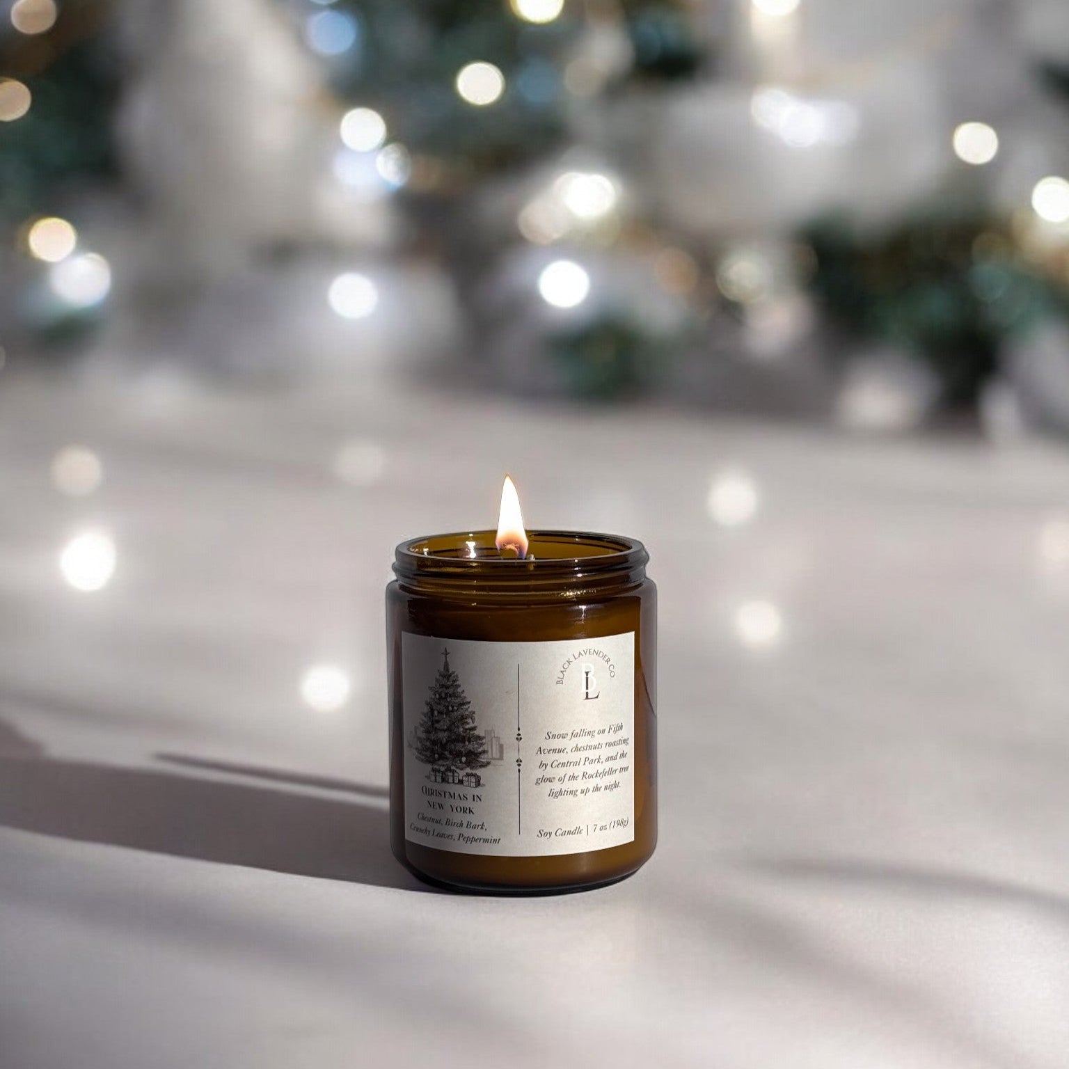 Snow drifts down Fifth Avenue as the city hums beneath a blanket of lights. The scent of roasted chestnuts mingles with crisp birch bark and the earthy crunch of fallen leaves. A cool whisper of peppermint lingers in the air, fresh, bright, and full of wonder. It's the magic of Central Park in winter and the glow of the Rockefeller tree all wrapped up in one unforgettable night.
