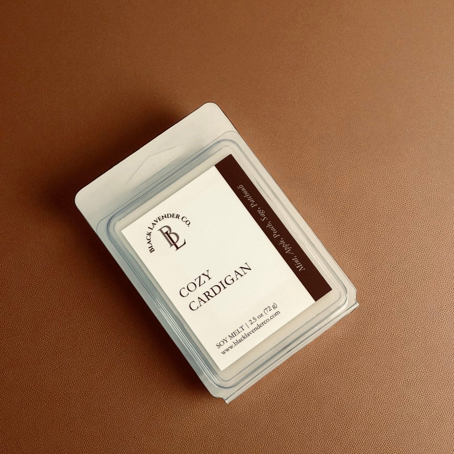 Soft and inviting, like slipping into your favorite knit on a cool evening. Crisp apple and juicy peach bring a gentle sweetness, balanced by refreshing mint and earthy sage. A touch of patchouli adds warmth, wrapping the scent in comfort that feels both modern and timeless.