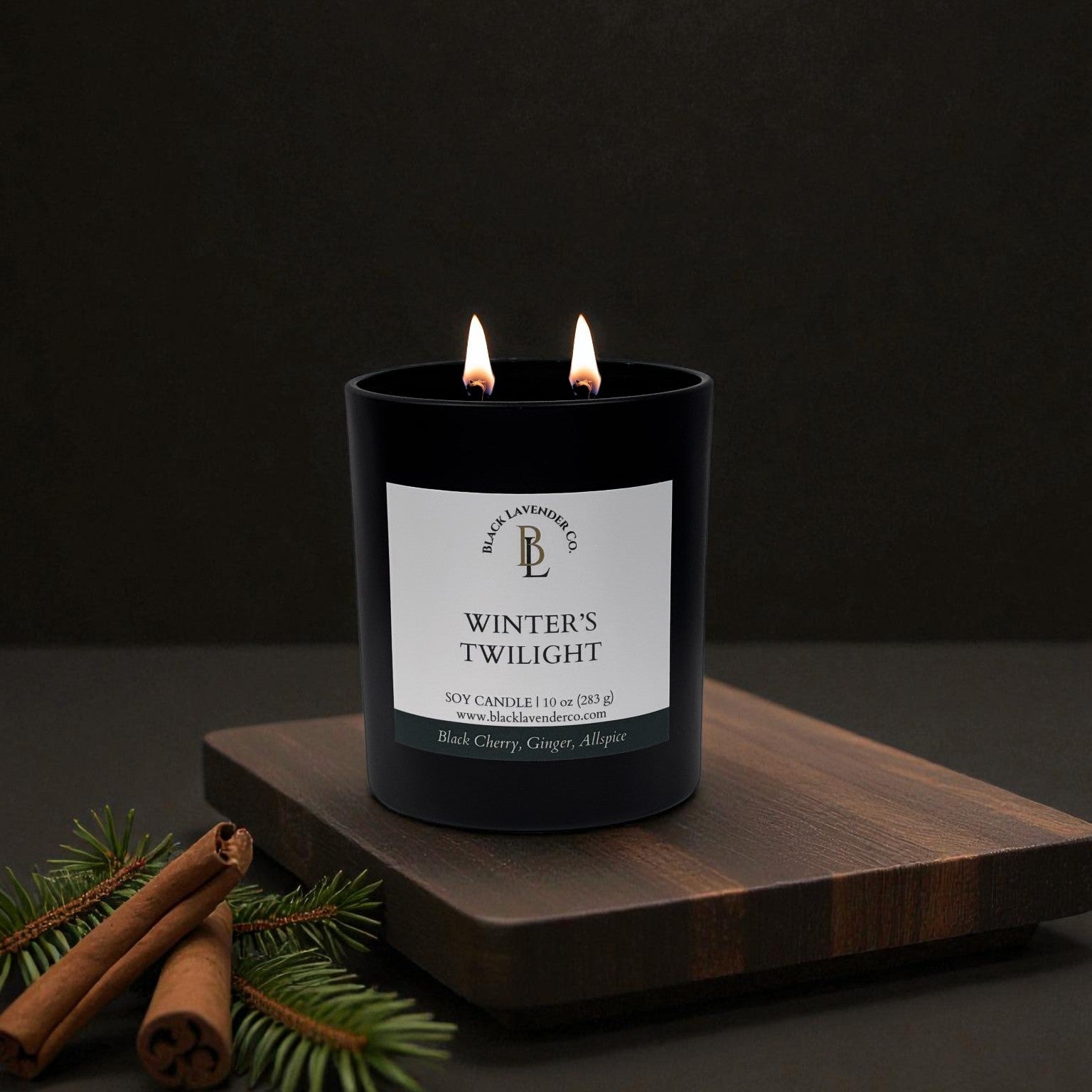 - 10 oz. double cotton wicked matte black jar with a bamboo lid (This size is perfect for filling medium to large sized living areas)